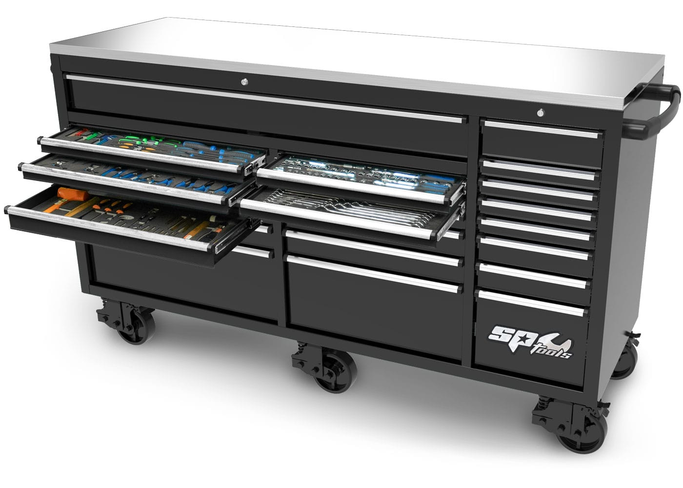 All USA Sumo Series roll cabs, top hutches and side cabinets include several built-in cable access points, strategically positioned to allow you to power or charge your tools and USB Powered devices as conveniently as possible. Each power board includes 4 individually switched surge protected power outlets and 4 USB ports.