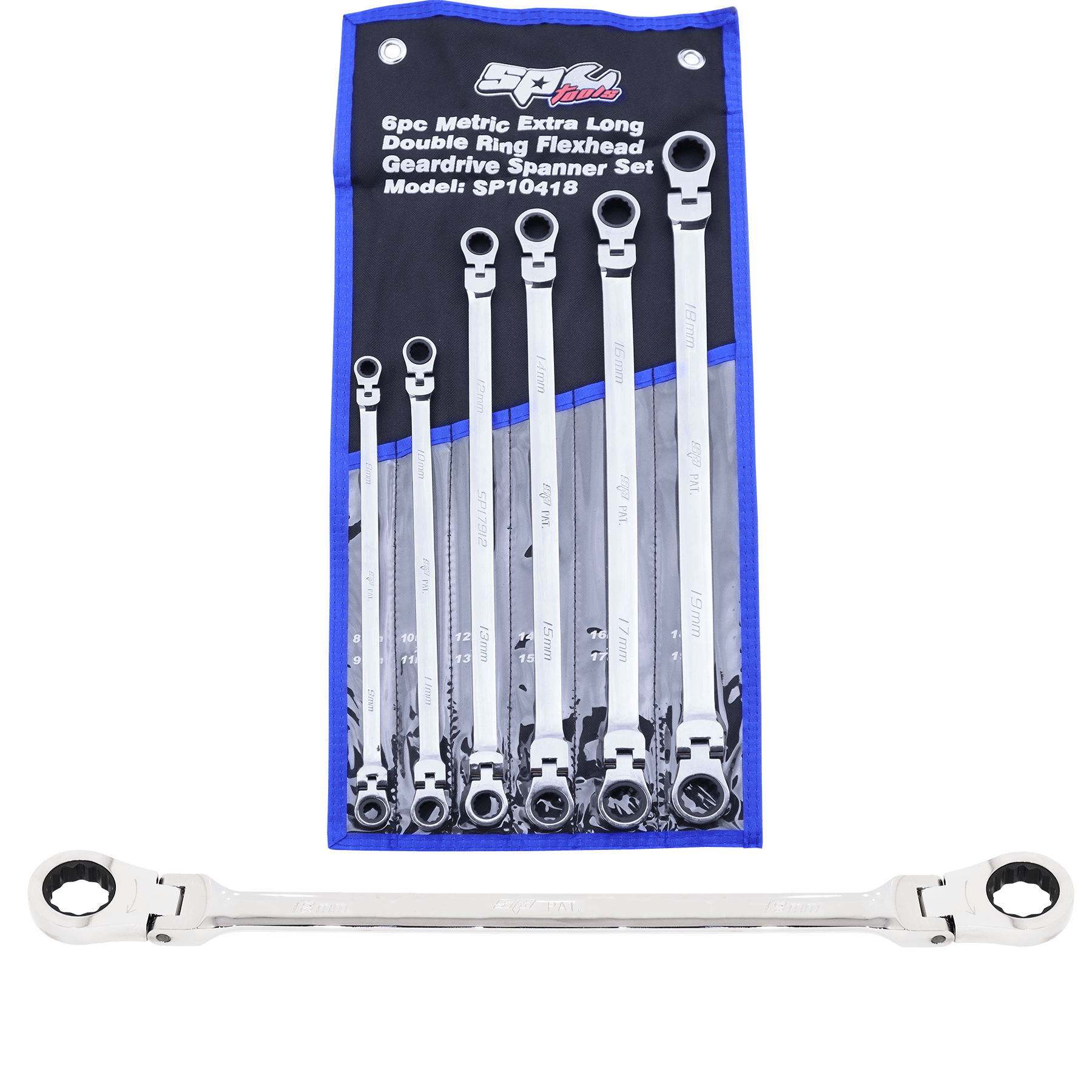 SET SPANNER EX LONG FLEX DOUBLE RING 72T GEARDRIVE 6PC METRIC